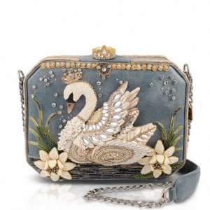 Handmade beaded white swan handbag