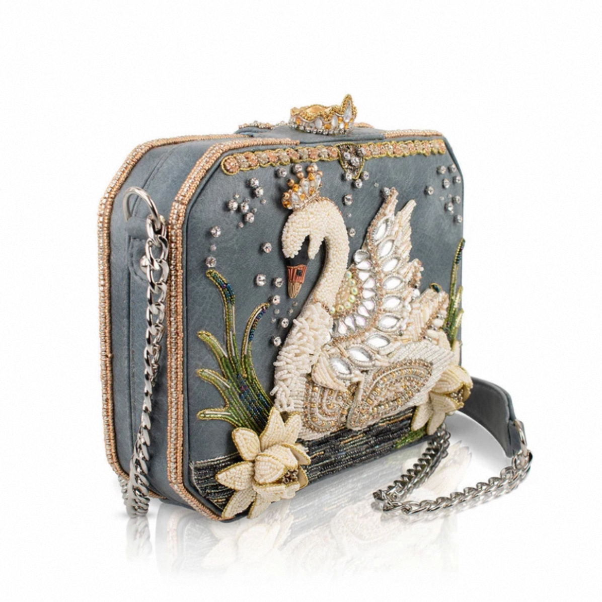 Handmade beaded white swan handbag